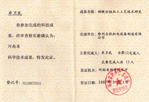 科技成果之煙梗加工